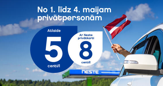 No 1. līdz 4. maijam uzpildies Neste DUS un saņem 5 centi/l atlaidi degvielai!